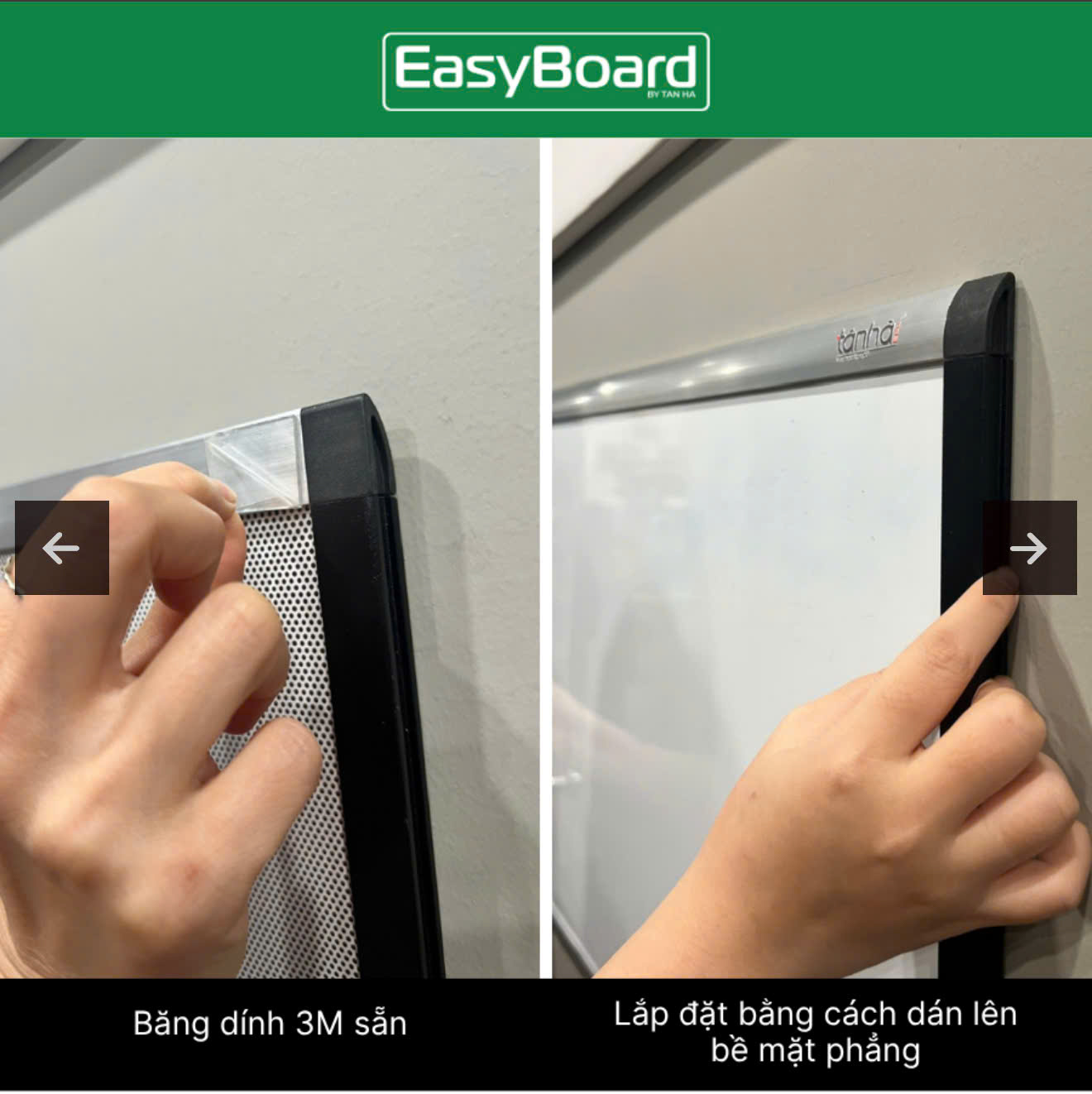 - Đính bảng bằng miếng dán 3M siêu dính– phù hợp mọi bề mặt phẳng như tường, gỗ, kính…